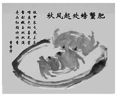 说完男人,说女人。林黛玉咋就成了最会食蟹的女人呢?《红楼梦》第三十六回有一首林黛玉咏蟹的诗,其中两句是“螯封嫩玉双双满,壳凸红脂块块香。多肉更怜卿八足,助情谁劝我千觞。”林妹妹果然是酒量大于食量,换了我等,即便是螃蟹长成了蜈蚣,百八十条腿也未必能送下千觞酒。美酒,美人,美蟹,还有美诗……林妹妹好不尽兴!