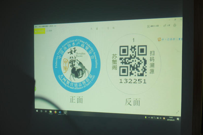 该蟹扣上绘着一只水墨画大闸蟹,配上古朴风雅的"中华好蟹"字样,相当显眼。在蟹扣背面,则有专属二维码以及密码,扫描二维码并输入密码,可进入该蟹的溯源系统。"一蟹一码"的严谨设置,让每一只"中华好蟹"都货真价实。